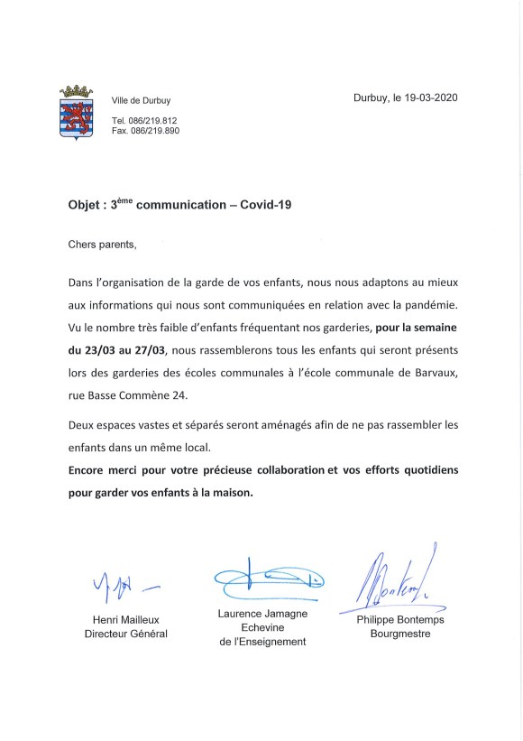 Covid 19 – 3ème communication