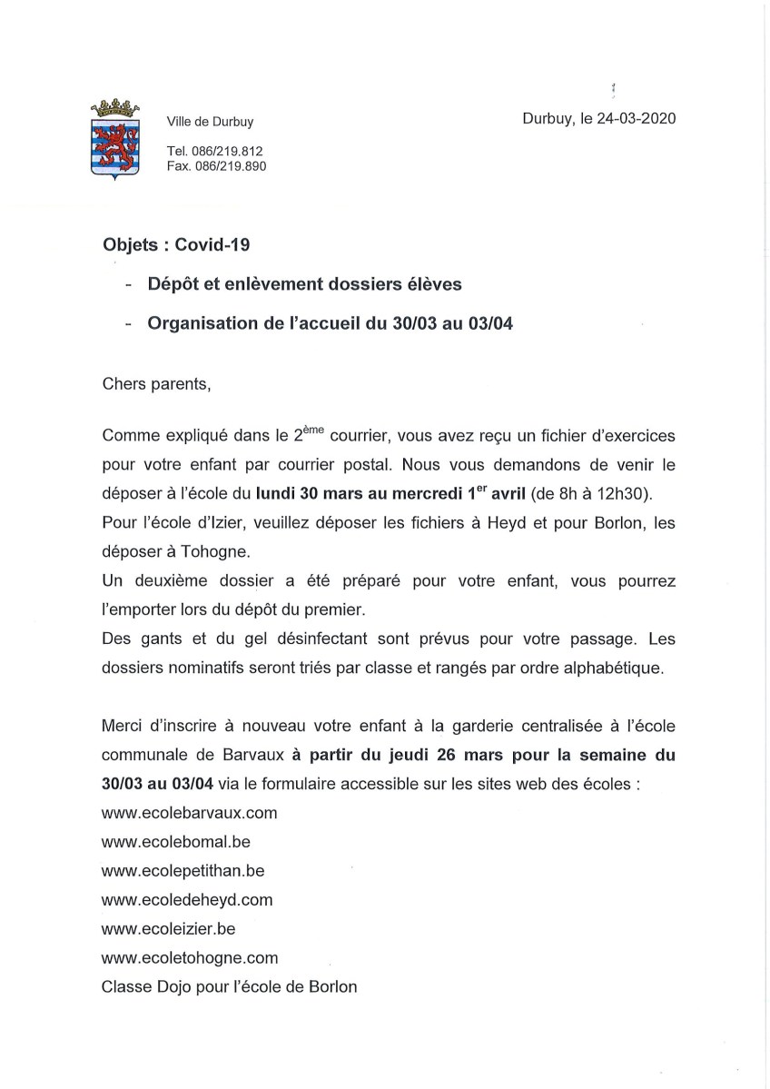 Covid-19-4e courrier-1 Next Publié 24/03/2020 à 2481 × 3509 dans Covid 19 – 4ème communication du Pouvoir Organisateur