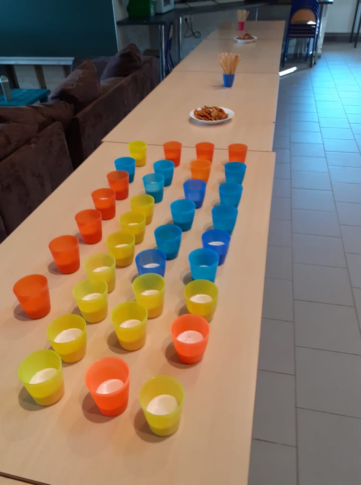Enfin, place à la fête : yaourt aux fraises, chips de légumes et grissini ! Et danse bien sûr !