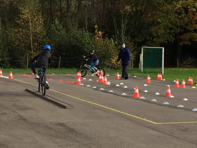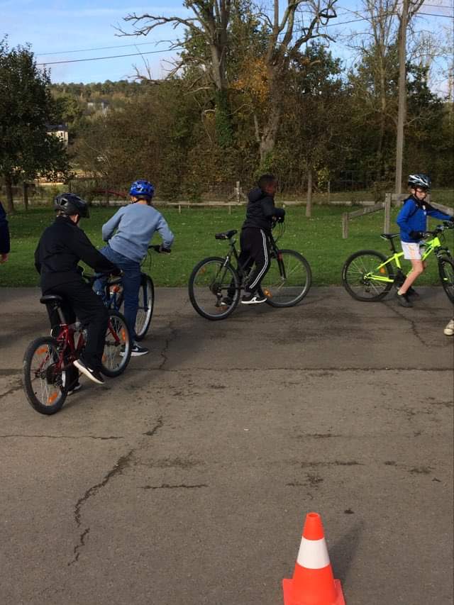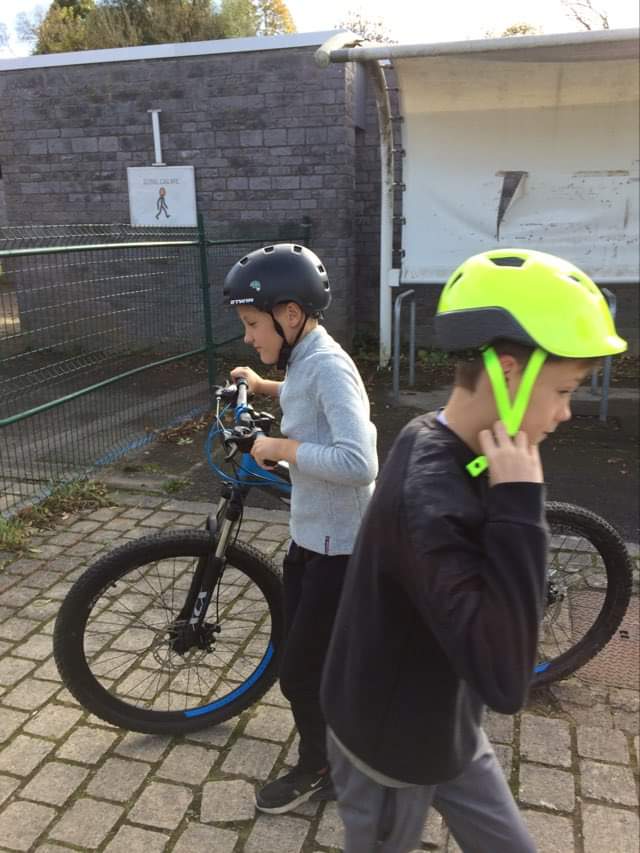 Parés de leur casque, les élèves de 5ème ont enfourché leur vélo pour commencer leur entraînement afin d’obtenir leur brevet de vélo.