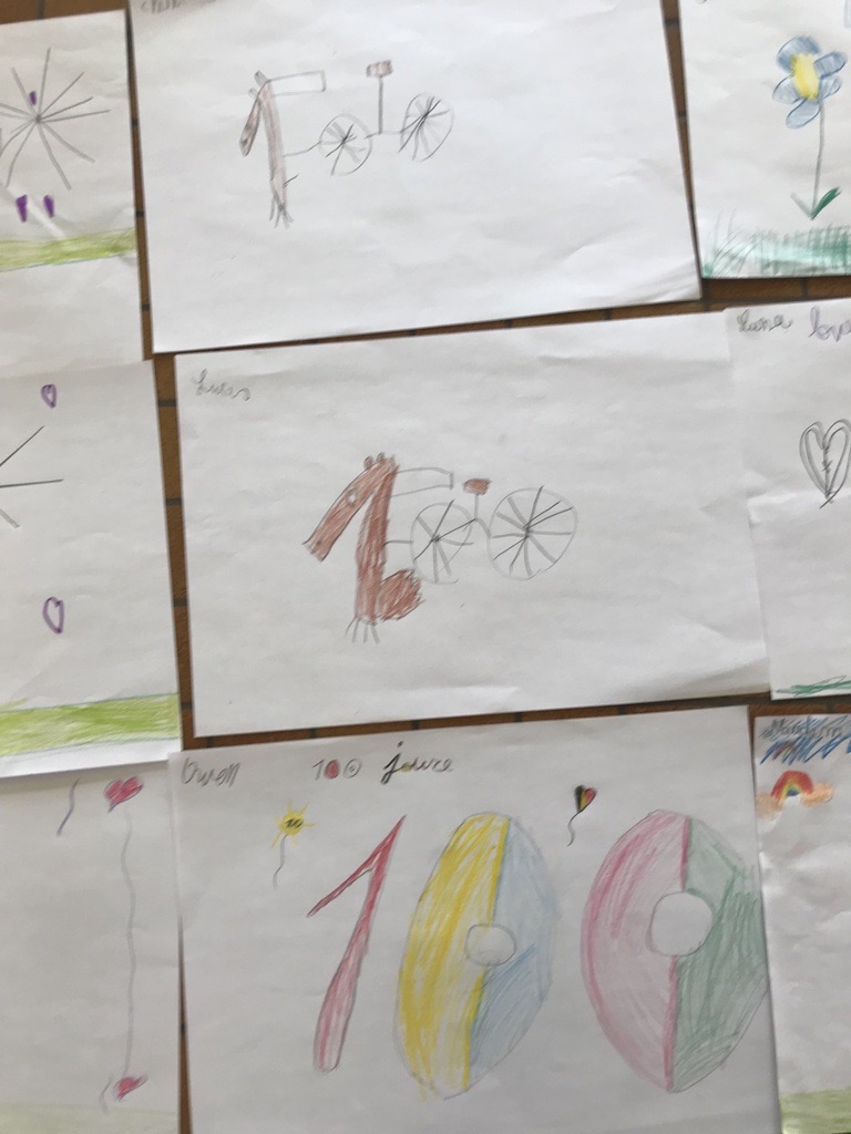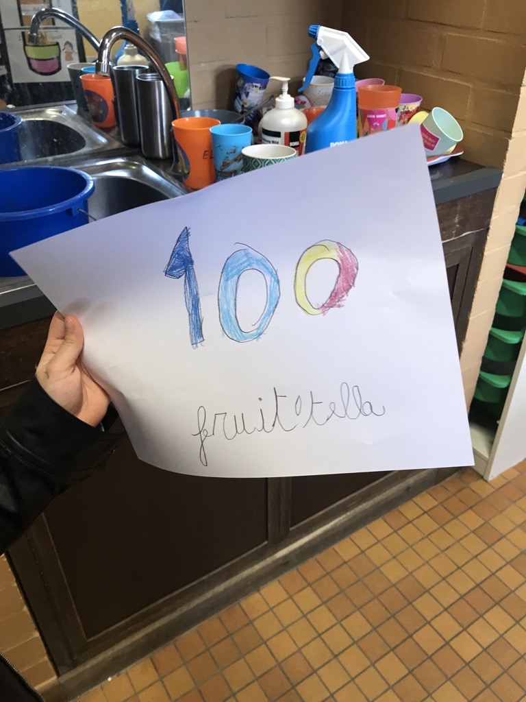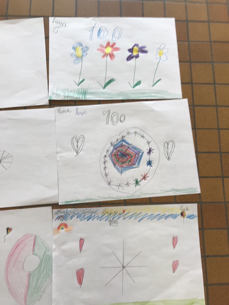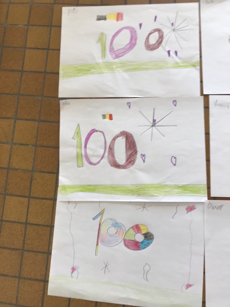 Ce lundi 21 février, les 2 classes de P1/P2 fêtaient le centième jour d’école.