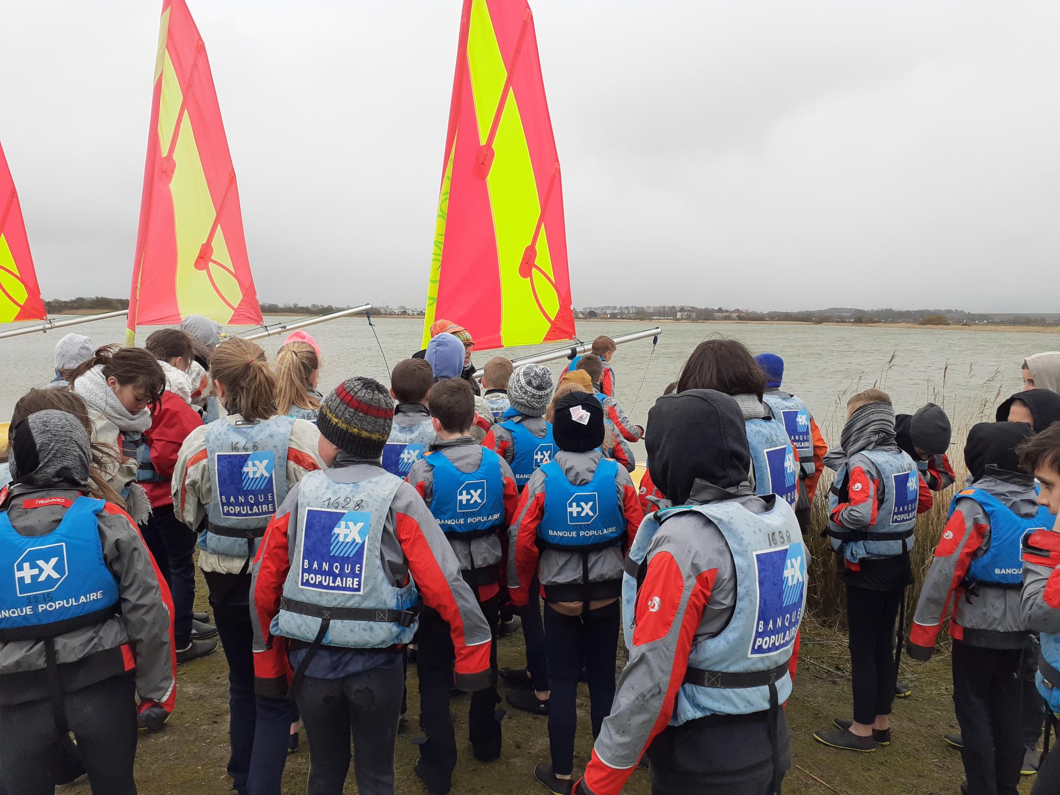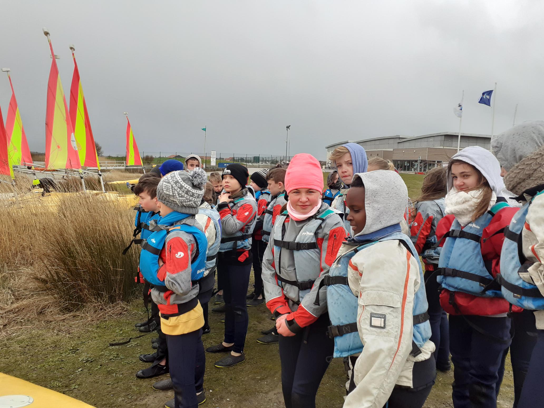 Au départ, tous les enfants étaient équipés puis tempête de grelons 😕😰… certains ont donc décidé de ne pas monter sur la voile ⛵ Seulement 12 enfants ont essayé !