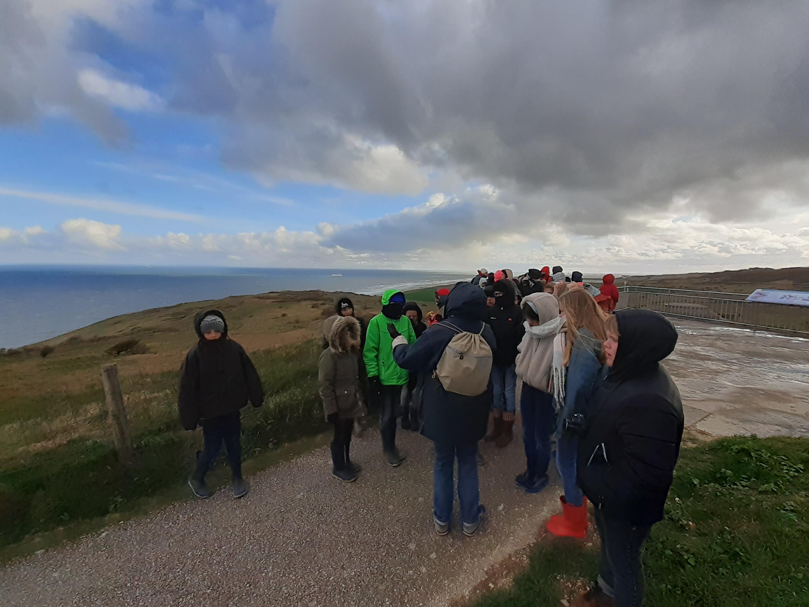 Ce matin, visite du Cap Griz Nez et du Cap Blanc Nez sous un vent glacial de 70km/h!!!!