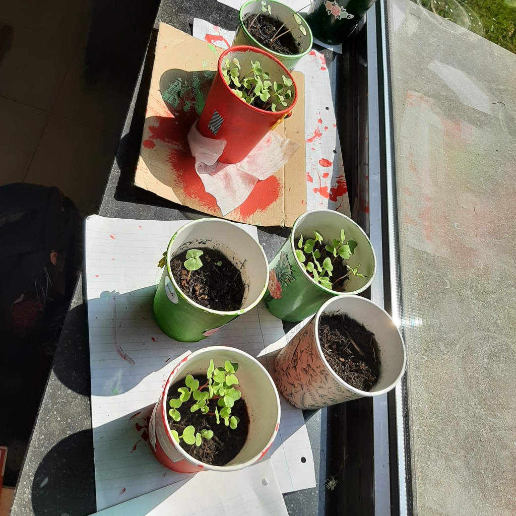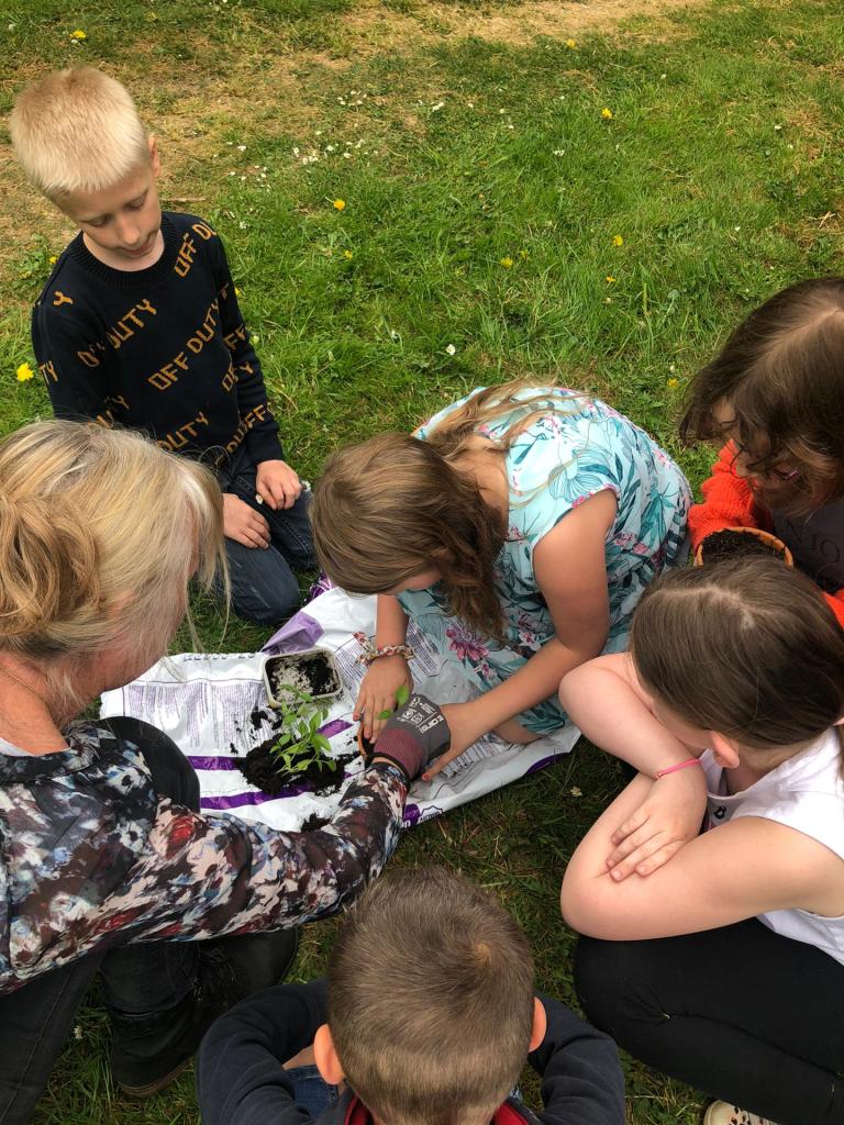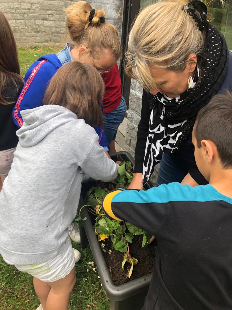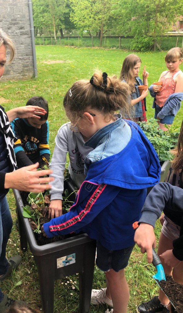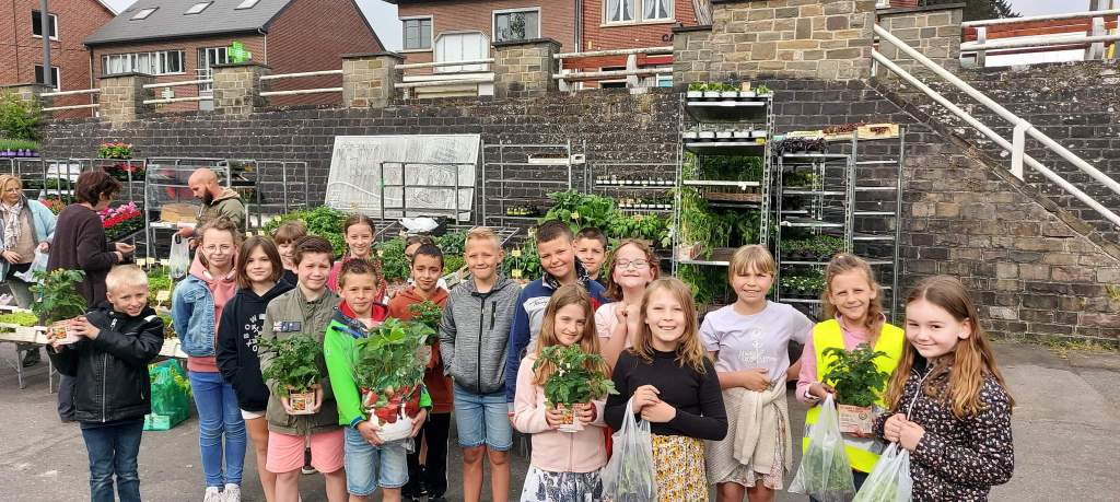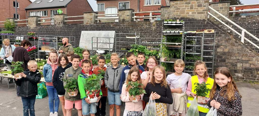 Après une visite au marché, les élèves de 4ème primaire ont profité du beau temps pour faire quelques plantations 🌱