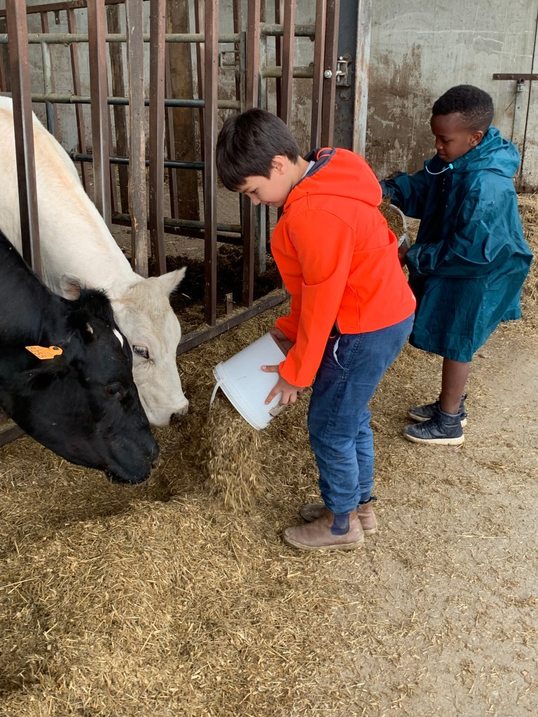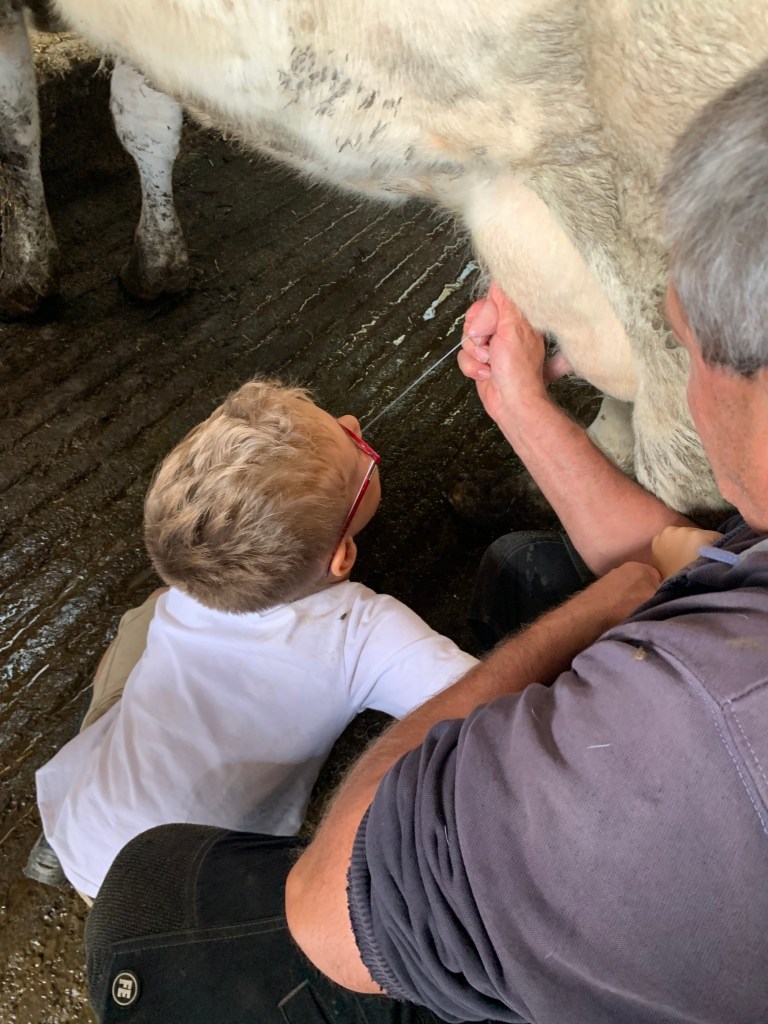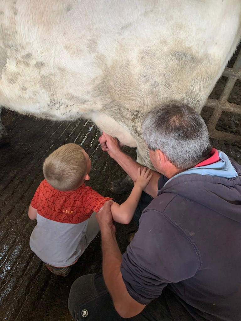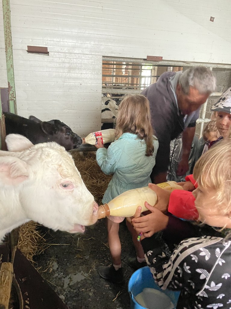 Apprentissage la traite des vaches et observation de très près (et d’en haut !) puis biberons pour les veaux 🐄🍼