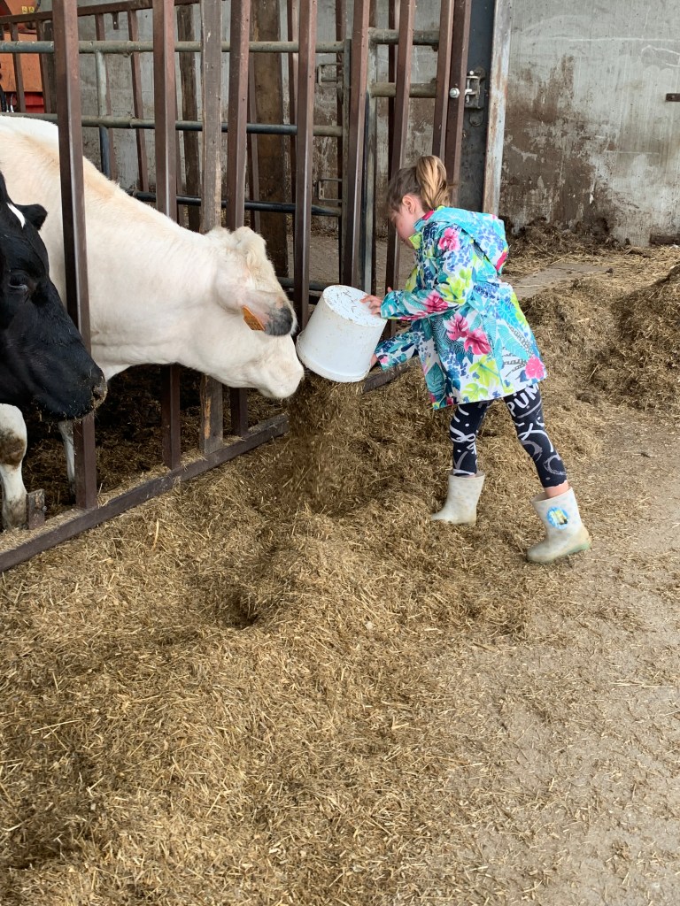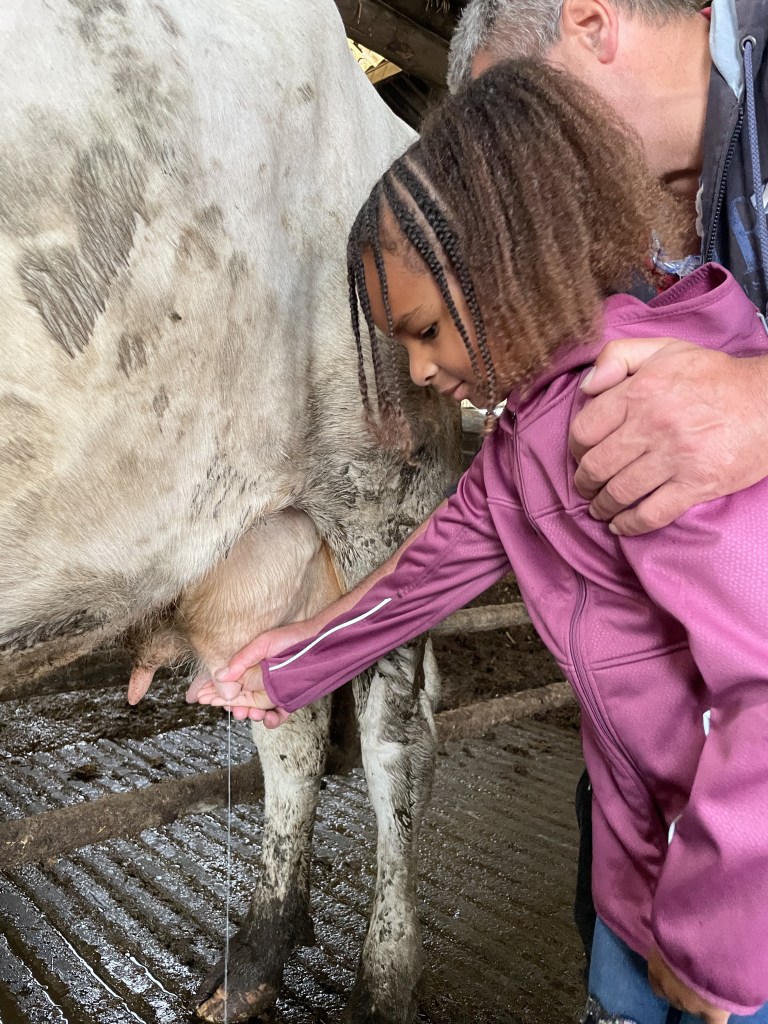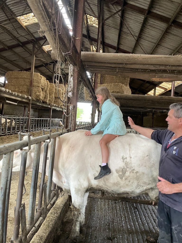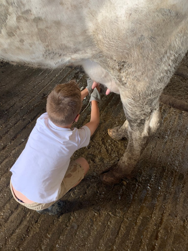 Apprentissage la traite des vaches et observation de très près (et d’en haut !) puis biberons pour les veaux 🐄🍼