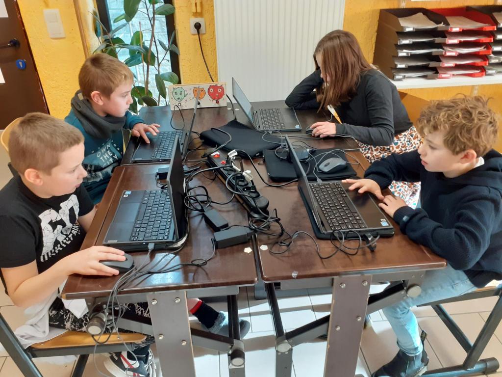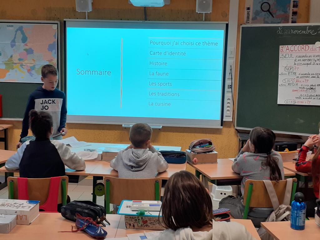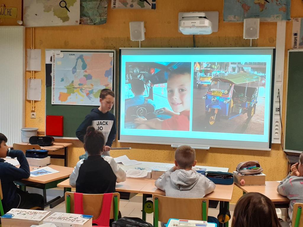 En classe, les aînés ont appris à créer un Powerpoint qu’ils utilisent ou non pour présenter leur réalisation. Ponctuellement, les P5 viennent assister aux présentations.