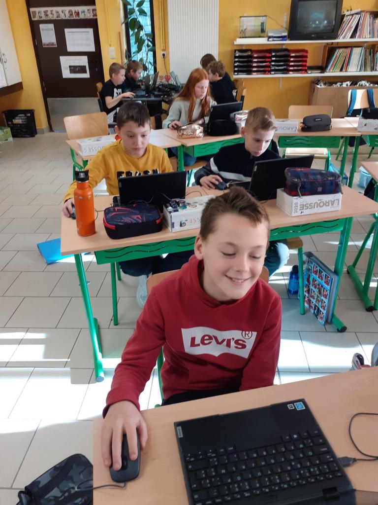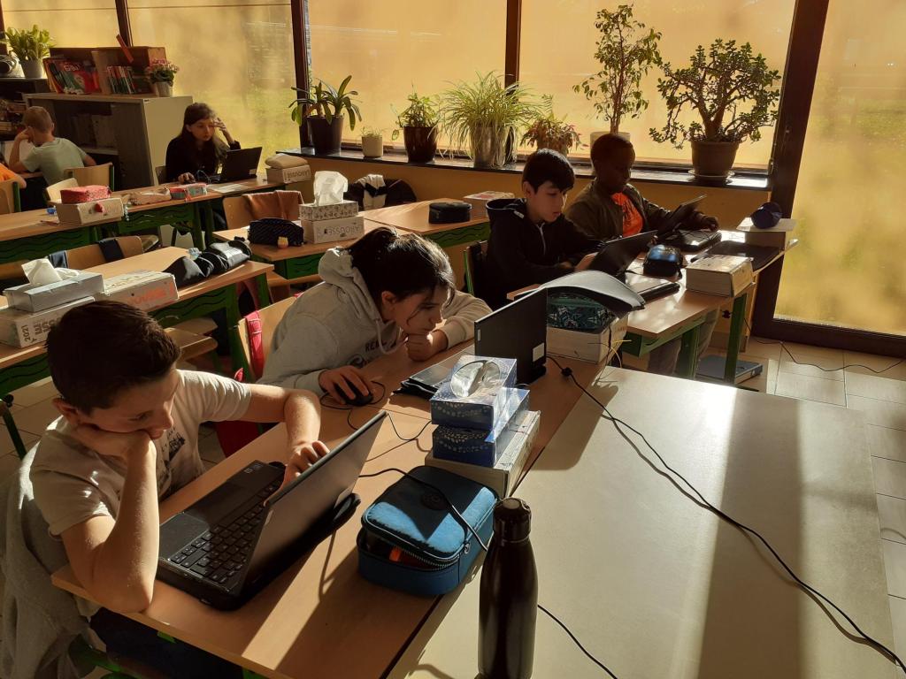 Chaque élève possède sa propre tablette. Madame nous propose des activités (escape game, exercices dans les rubriques en math et français, création de Powerpoint, recherches sur internet pour réaliser un travail,…)