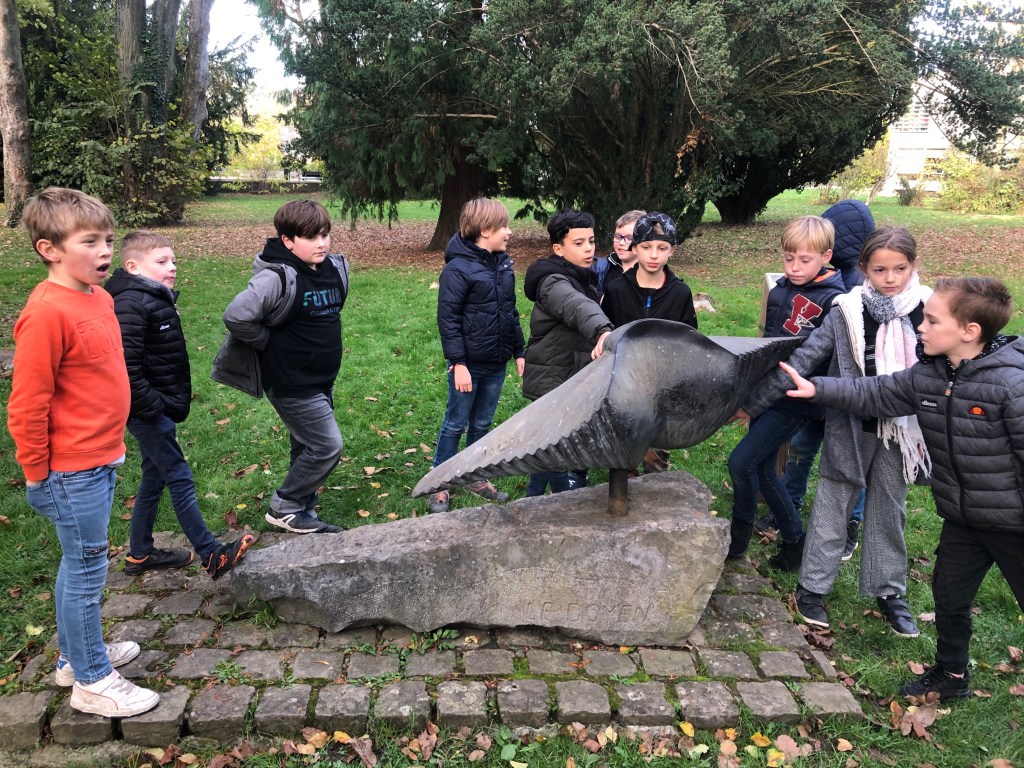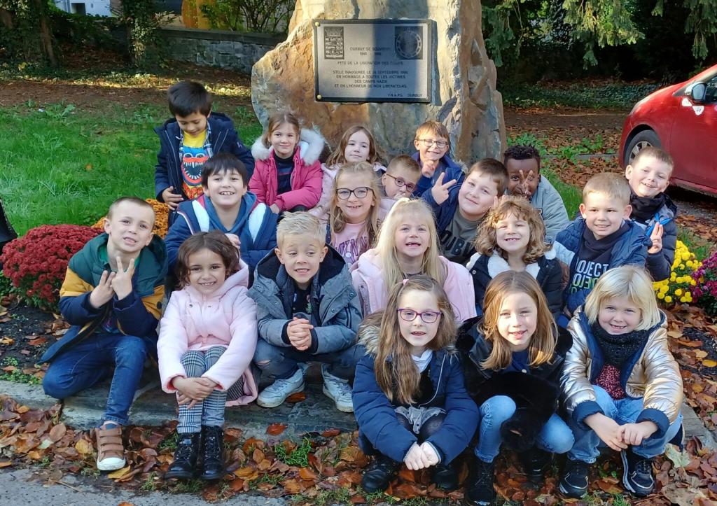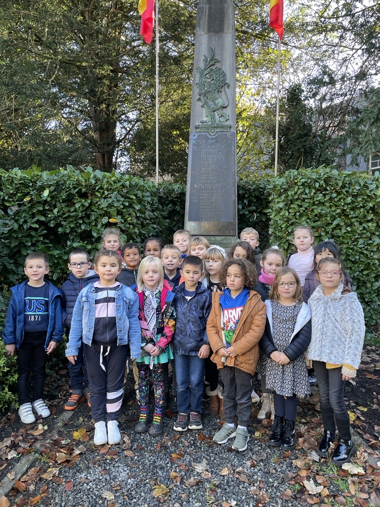 Après la lecture de l’album « Maudite soit la guerre », nous nous sommes rendus au monument du souvenir.