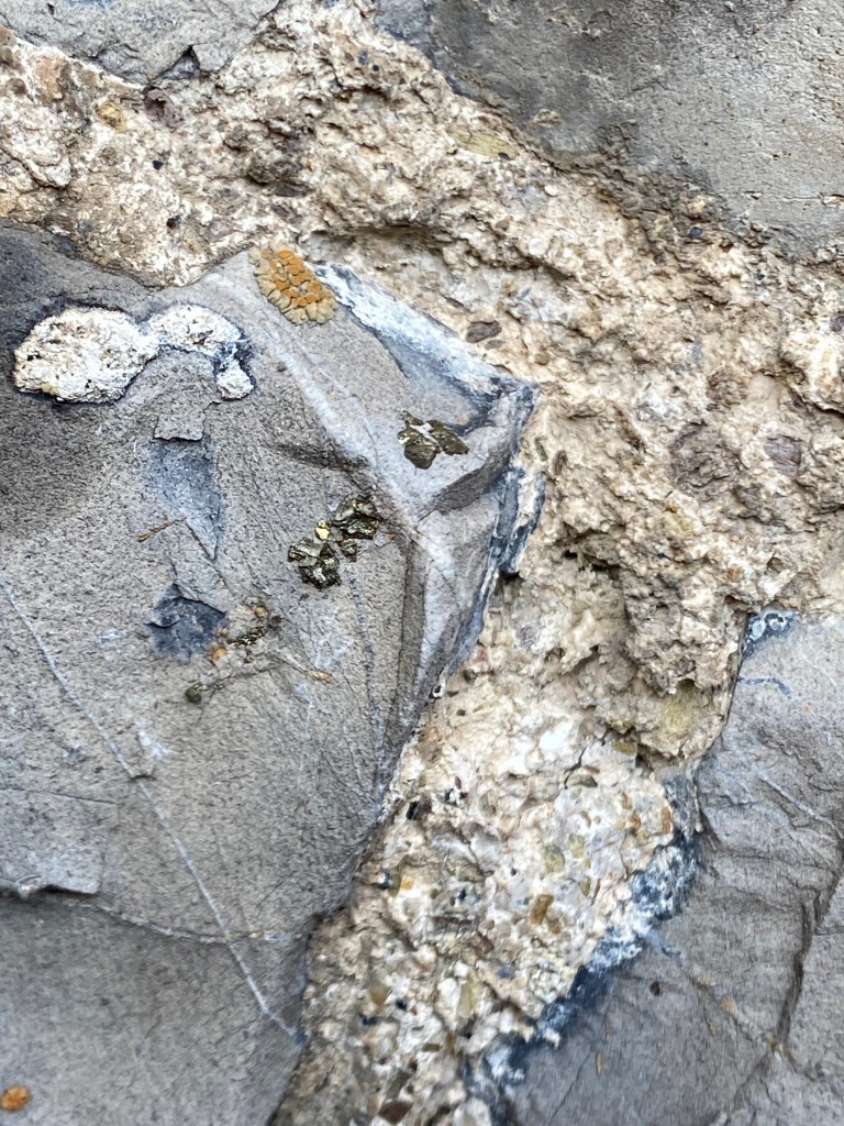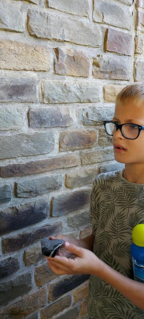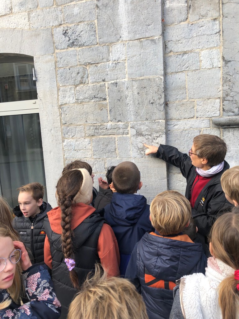 Le 8 novembre dernier, nous avons parcouru les rues de Barvaux en compagnie d’une géologue qui nous a appris un tas de choses sur les roches qui nous entourent. Sur les murs de certains bâtiments, nous avons observé des fossiles vieux de plusieurs millions d’années et de la pyrite.