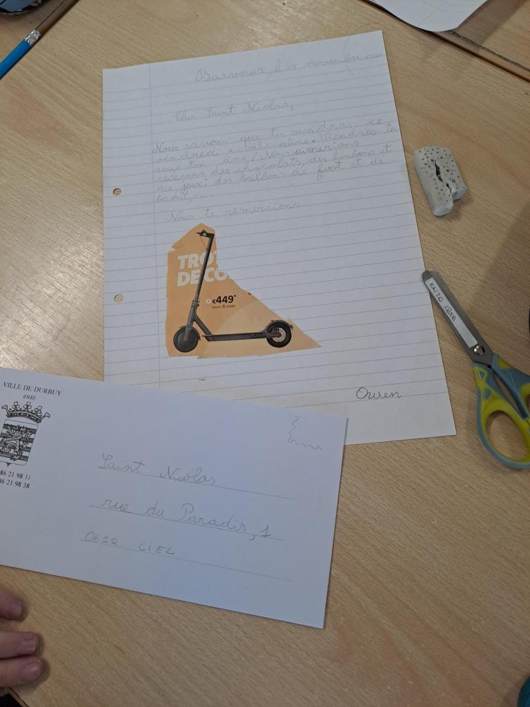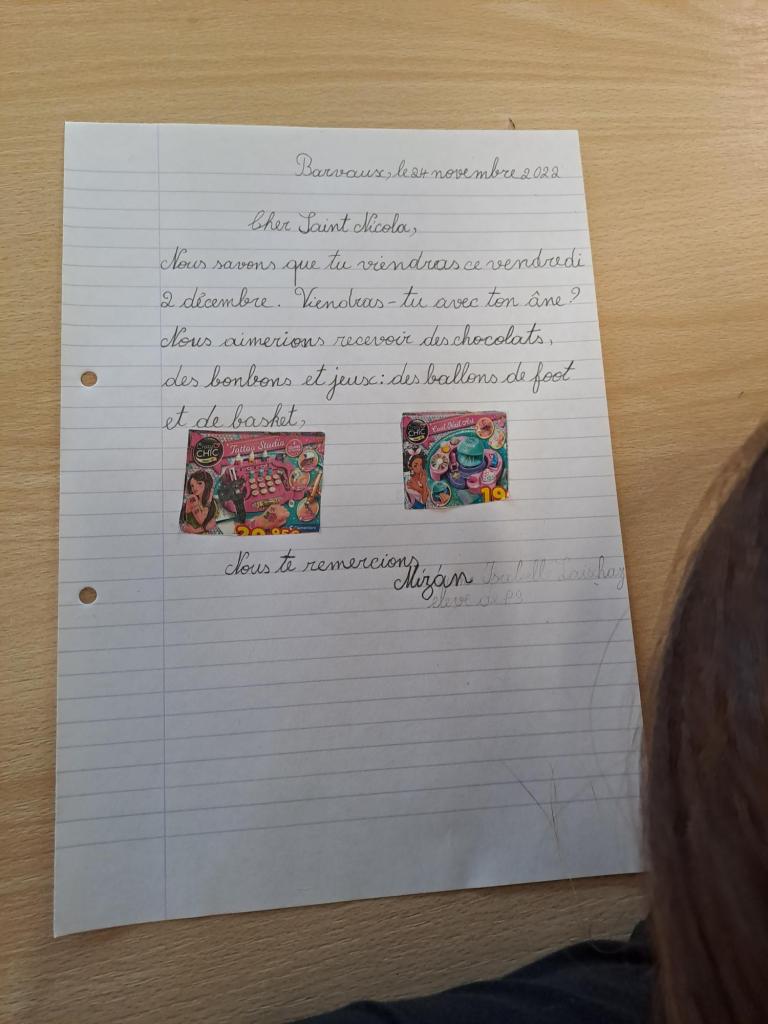 P1_2B : Savoir écrire ✍️ une lettre pour saint Nicolas.
