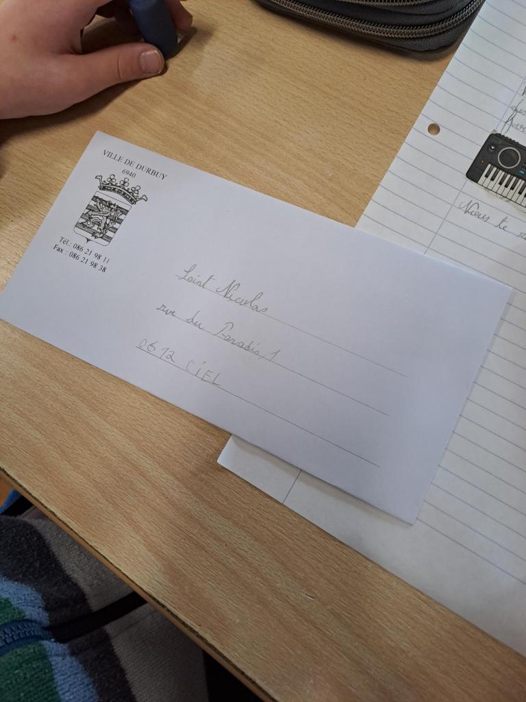 Chaque élève a rédigé sa lettre au grand saint! Une belle occasion de travailler les règles pour écrire la lettre et l’enveloppe !