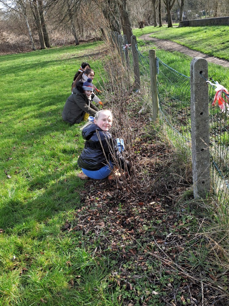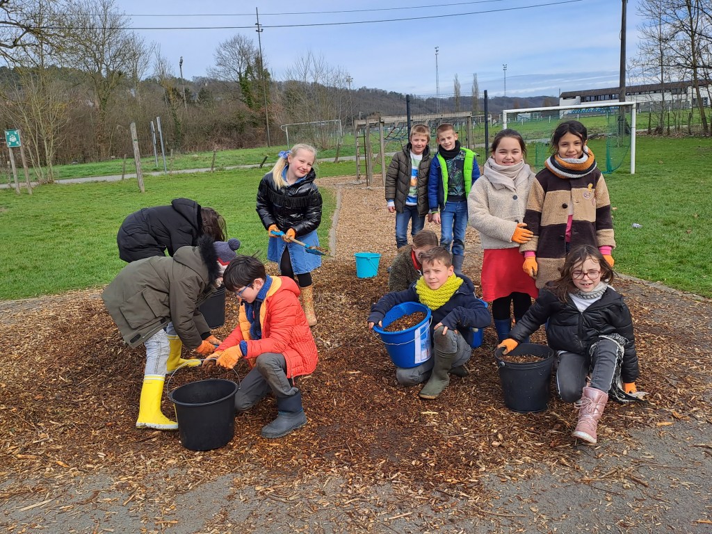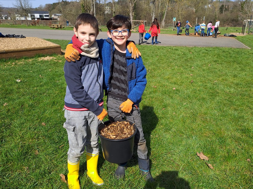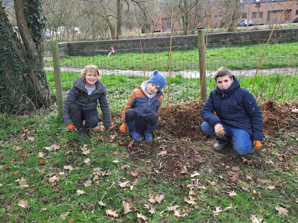 Nous avons profité d’une magnifique météo pour entretenir la haie de petits arbustes : enlèvement autour de chaque plant des mauvaises herbes puis paillage avec des copeaux apportés par le service communal! Le printemps arrive doucement, nous observons les premières fleurs, premiers bourgeons !