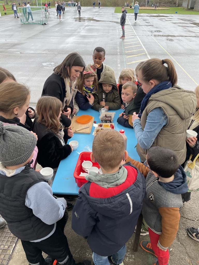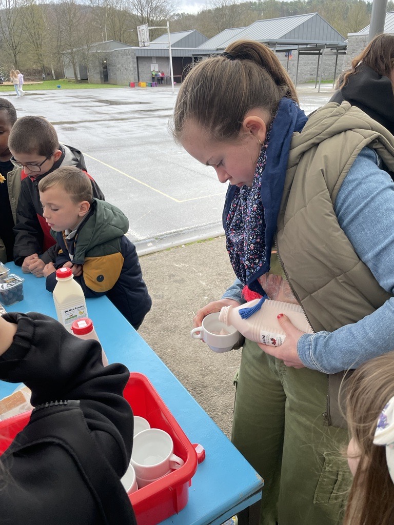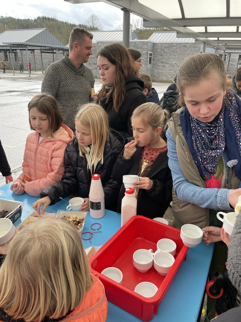 Chaque jeudi et vendredi durant la récréation du matin, votre enfant peut déguster des yaourts et du fromage provenant de la ferme d’Ozo.