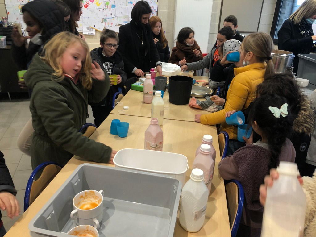 gratuitement pendant la récréation du matin (soupe, fromage, noix, fruits, yaourt…).